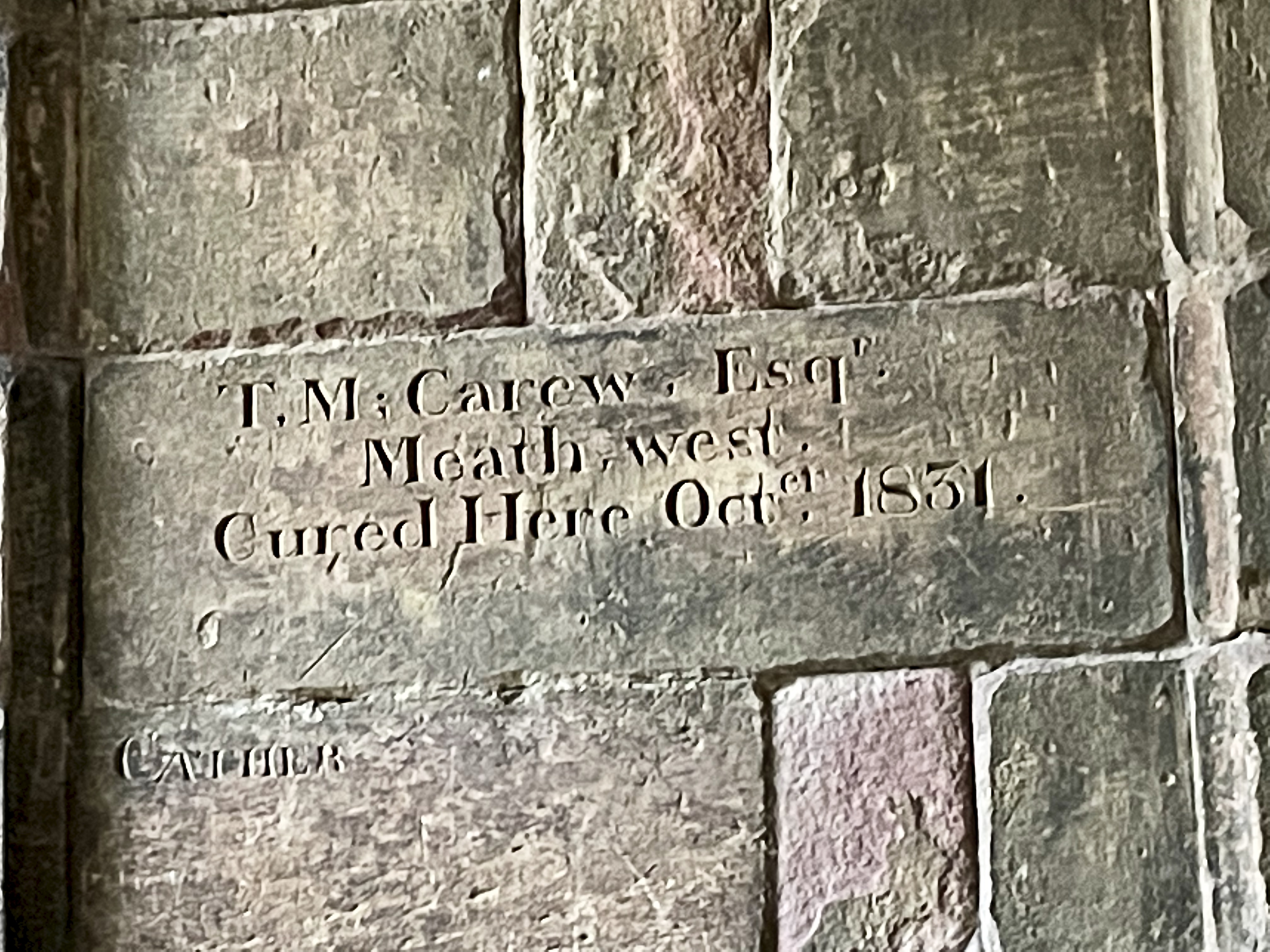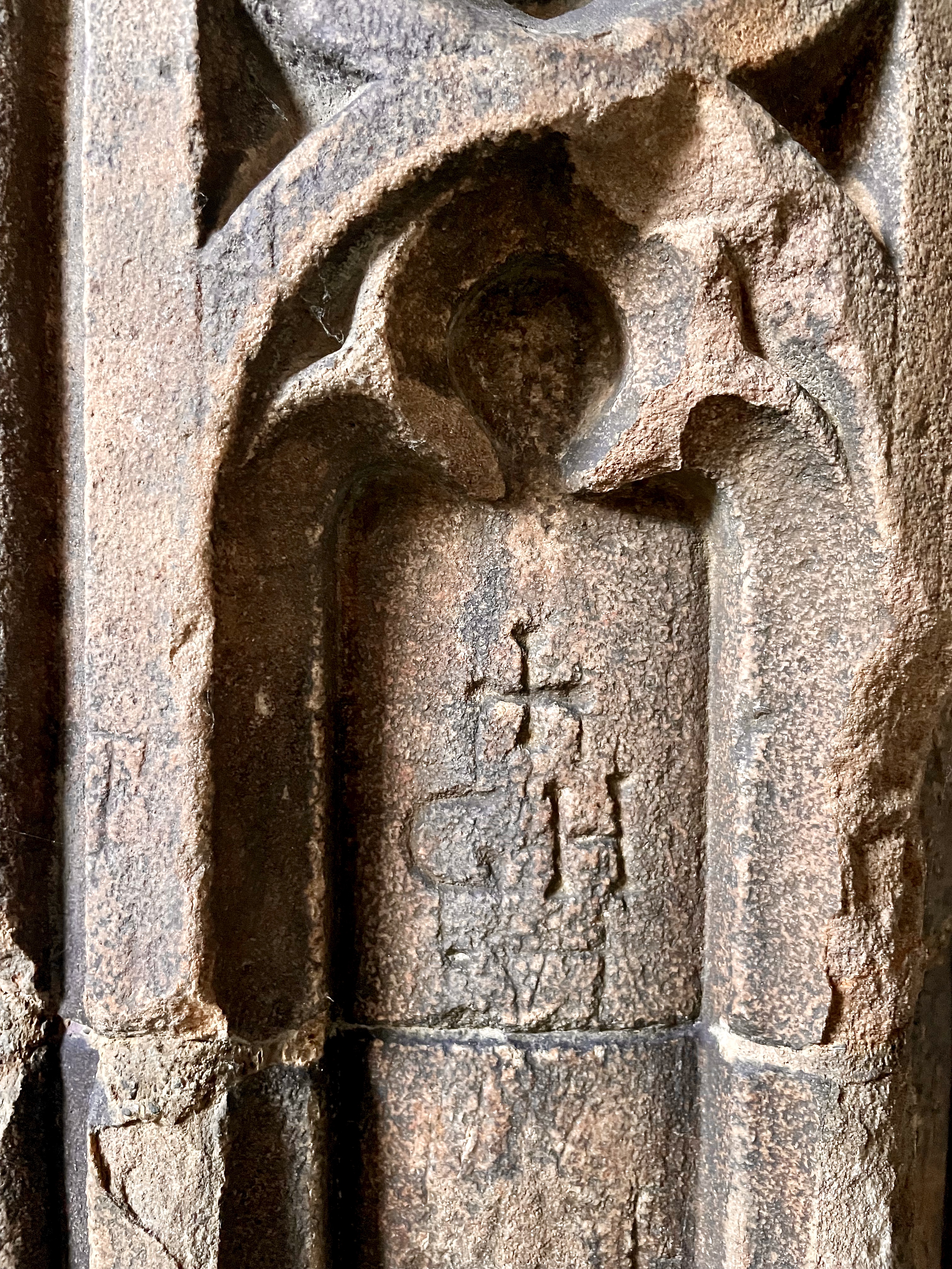 While I was looking around at the walls, for some reason, I suddenly missed my mom. She died of cancer about three years ago. I don’t know why she came to mind: she had no connection to Saint Winefride, or any other saint, and I don’t think she would have known exactly how to take the story or the shrine, either. She would have looked at the stones, though—she always looked at stones. Mom never traveled very far, but she was an explorer at heart, the kind of person who took an active interest in pretty much everything and everyone. I could just hear her voice in my head as I looked at the names carved into the walls: “Let’s see if we can find the oldest one!” So she and I did.